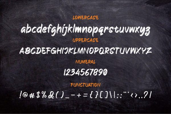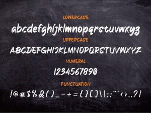 Blackboard (.ttf .otf .woff) comes with upper and lowercase Standard Characters, Punctuation, Numerals. And other Glyphs.