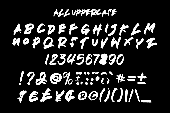 Deathblood (.ttf .otf .woff) comes with upper and lowercase Standard Characters, Punctuation, Numerals. And other Glyphs.