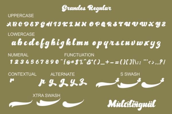 Grandes is a thick script font with a vintage style. Use it to add that special retro touch to any design idea you can think of!