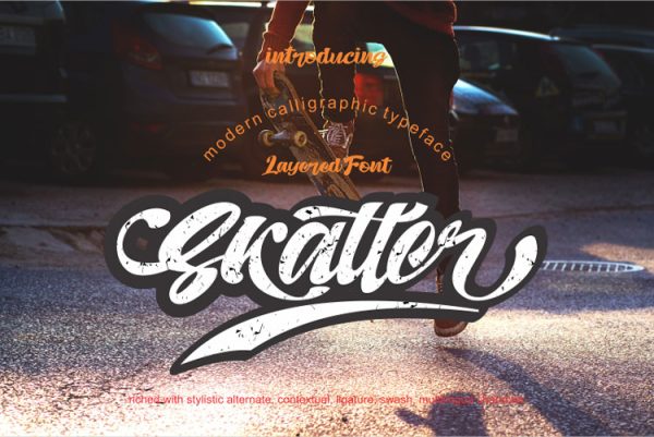 The Skatter is a 2 layer font with a modern calligraphy style. It has a dynamic and artistic style which can be used for giving your design an unique look.